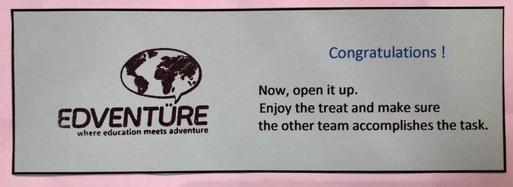 Well, inside the treasure box there were some chocolate treats for the winning team, and a dare task to the losing team.